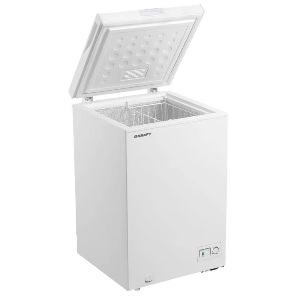KRAFT BD (W)-135QX dondurucu sandıq evdə, kiçik mağazalarda, kafe və digər obyektlərdə dondurulmuş məhsulların uzun müddət saxlanması üçün nəzərdə tutulmuş etibarlı və praktik məişət texnikasıdır. Üfüqi konstruksiyası və geniş daxili kamerası sayəsində ət, balıq, tərəvəz, yarımfabrikatlar və digər qida məhsullarını rahat şəkildə saxlamaq mümkündür.